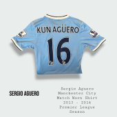 Shirt worn by Aguero for Manchester City during the Premier League fixture v Sunderland at the Etihad Stadium on the 16th April 2014