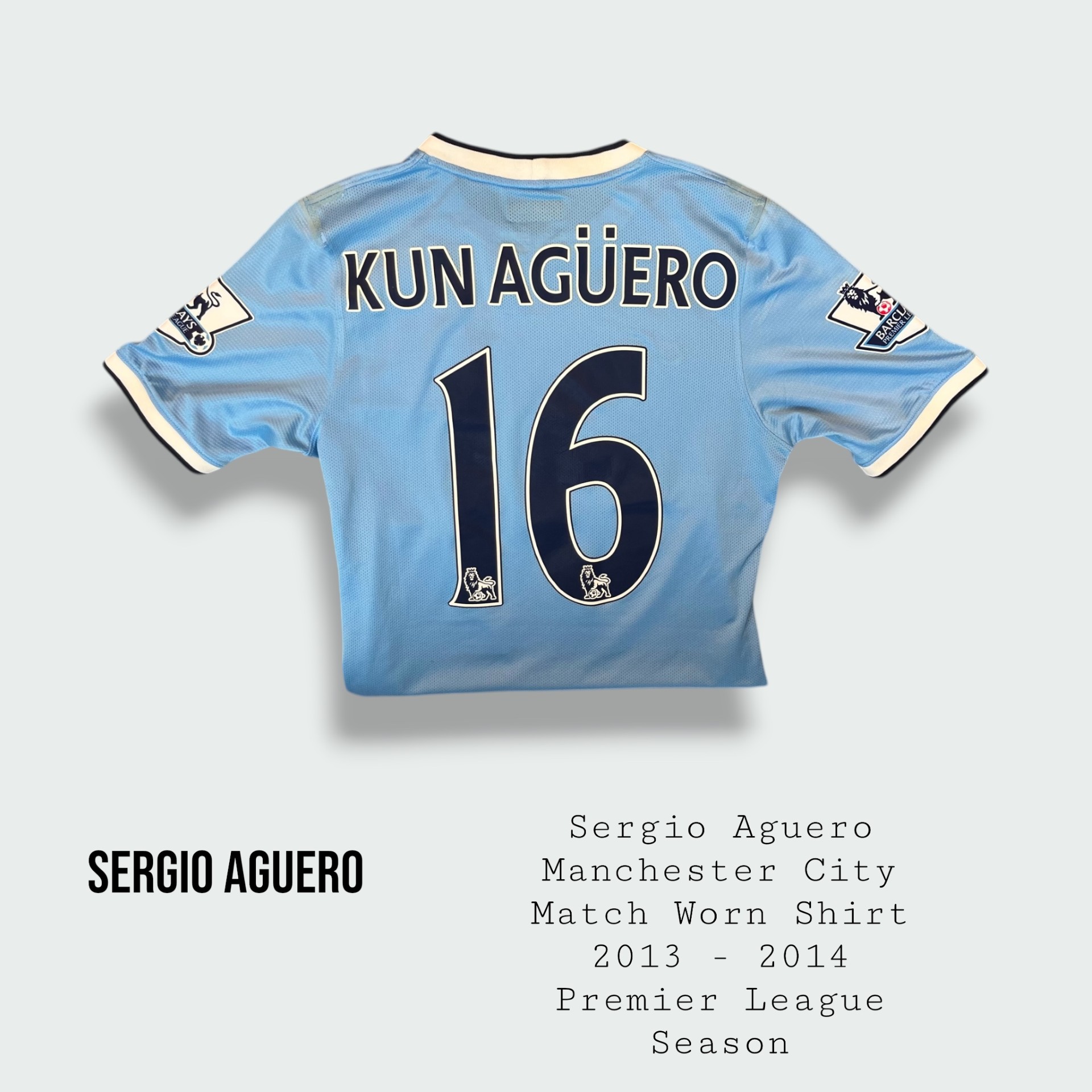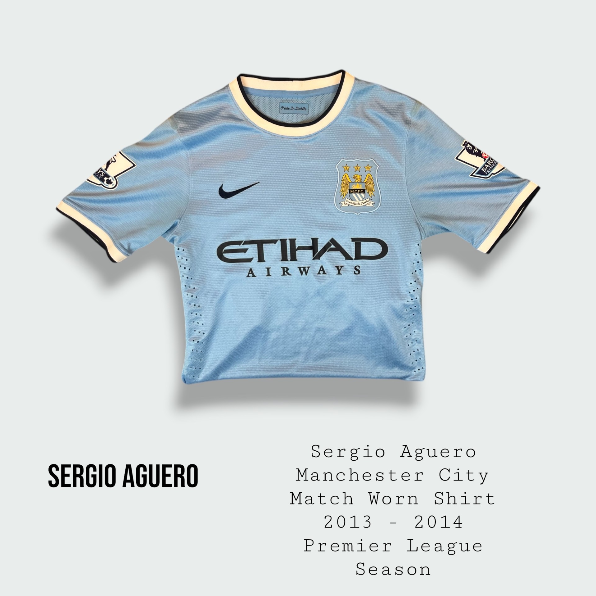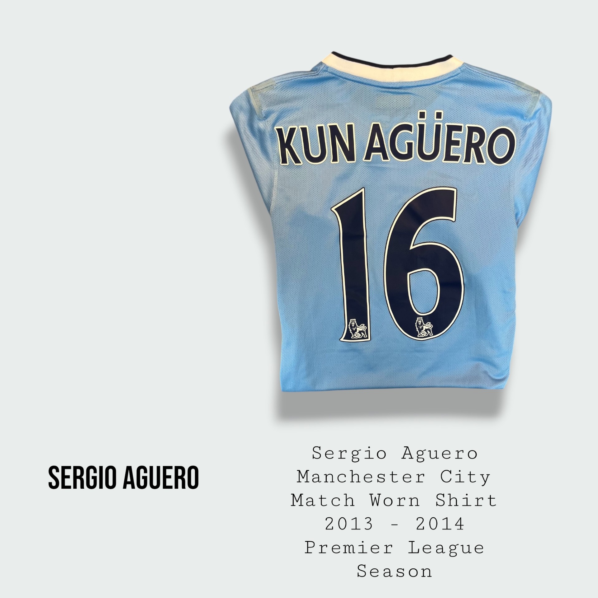 Sergio Aguero Match Worn Manchester City Premier League Shirt 2013 – 2014 Season
