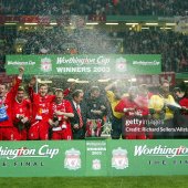Boots worn by Gerrard whilst playing for Liverpool during the 2002 - 2003 Premier League, Champions League season and additionally the Worthington Cup Final in Cardiff v Manchester United on the 2nd March 2003