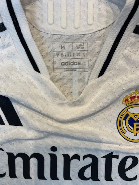 Shirt is the correct size for Vinicius and has all the correct labels and tags inside which is different to that of the retail version shirt and issued directly to the club - player for match use