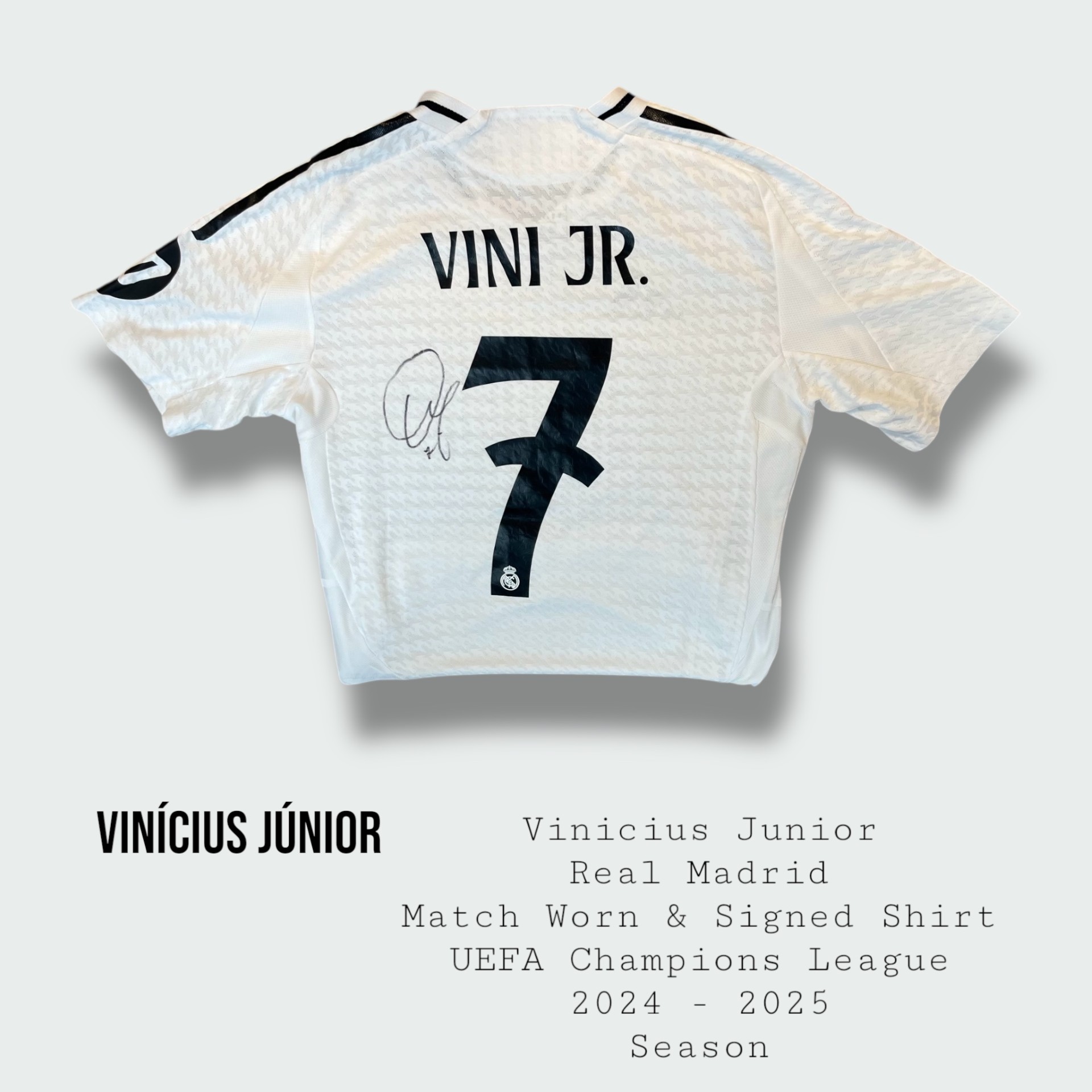 Vinícius Júnior Match Worn & Signed Real Madrid Shirt 2024 – 2025 Season