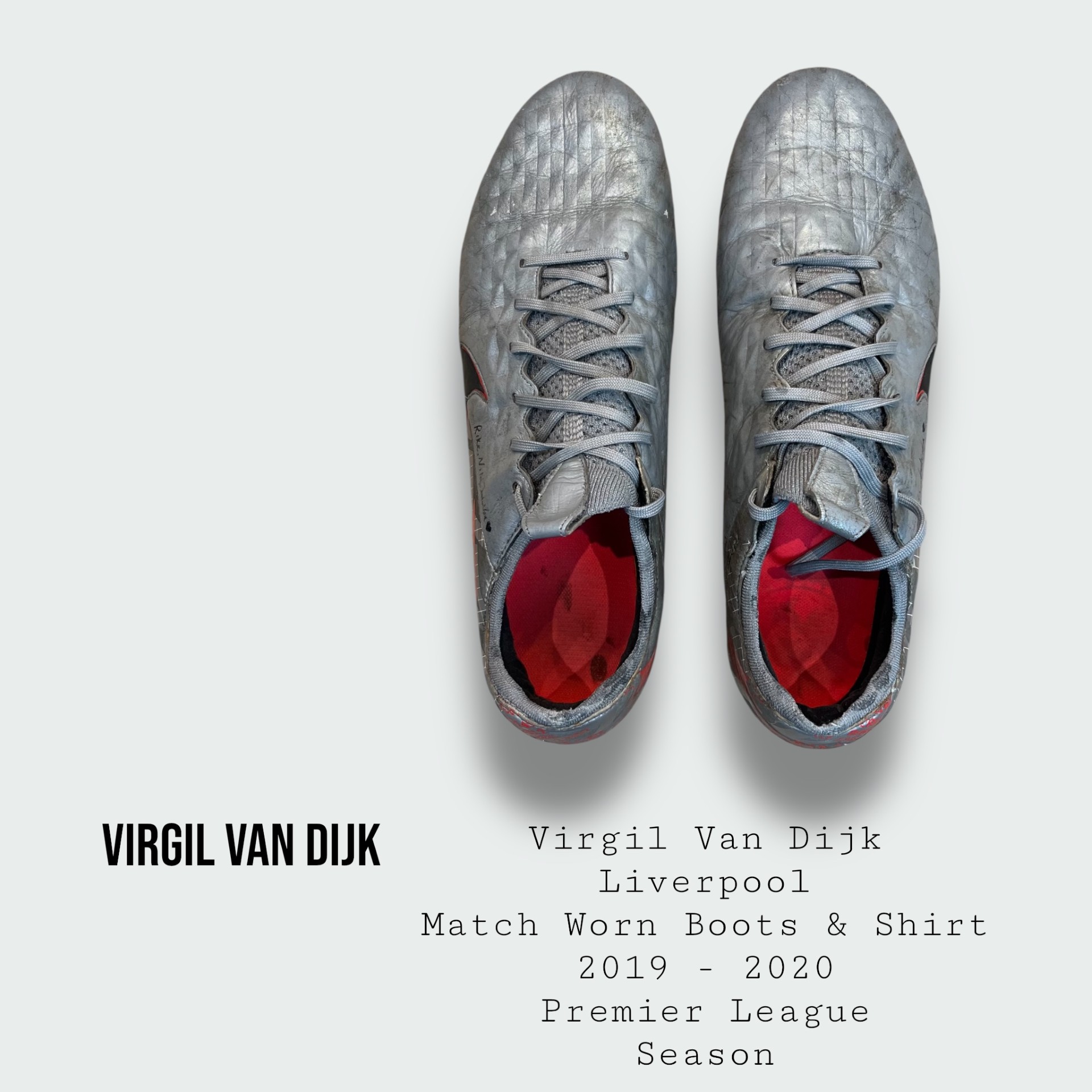 Virgil Van Dijk Match Worn Liverpool Boots & Training Shirt 2019 – 2020 Premier League Champions Season