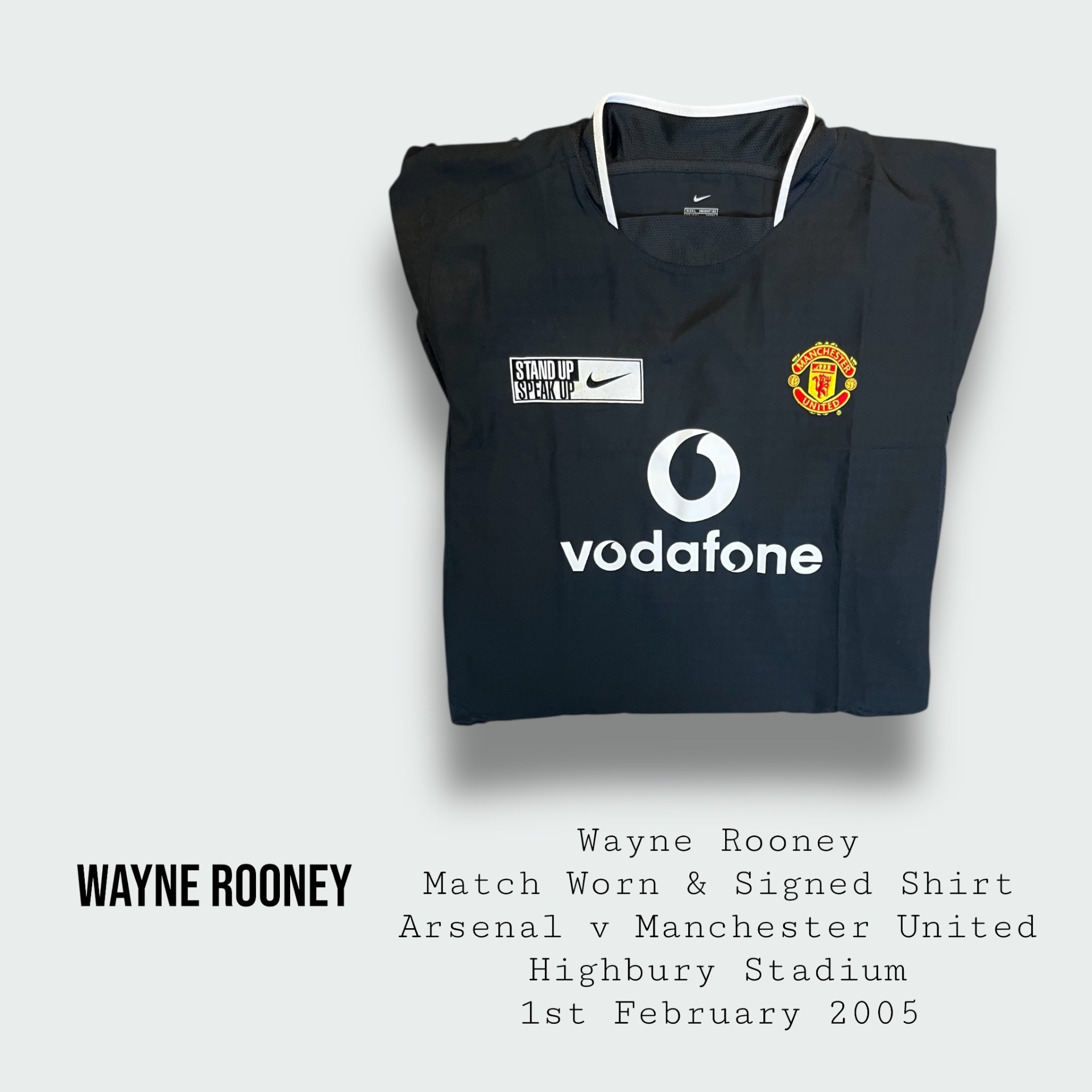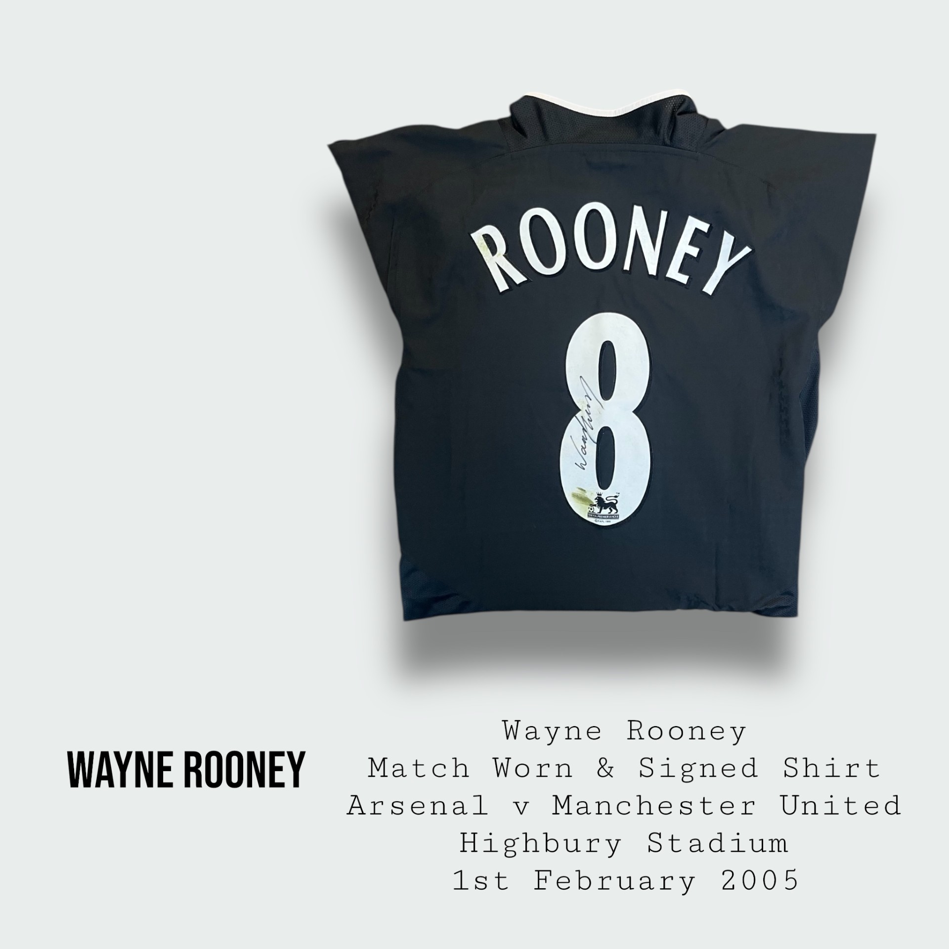 Shirt worn by Wayne for Manchester United during the Premier League fixture v Arsenal at Highbury on the 1st February 2005