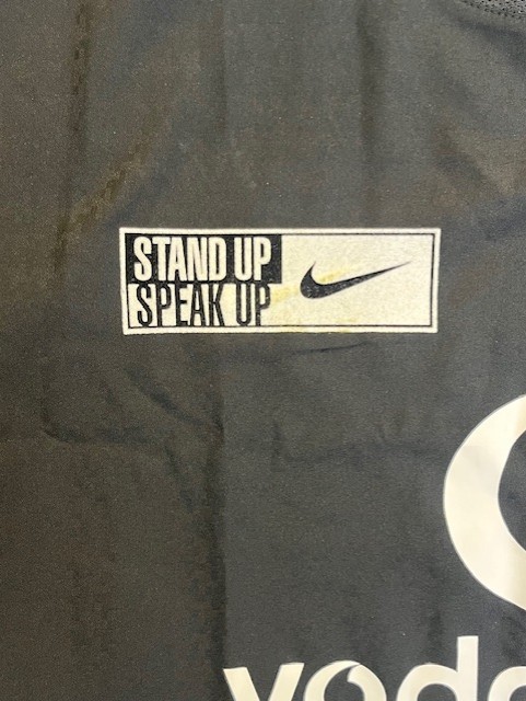 Shirt has correct match, player and Premier League match identification marks throughout and also the rare stand up speak out patch on the front of the shirt which was only used for this fixture