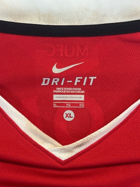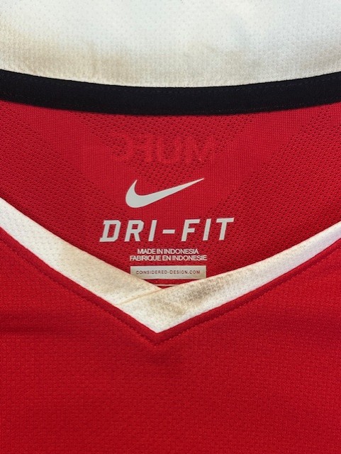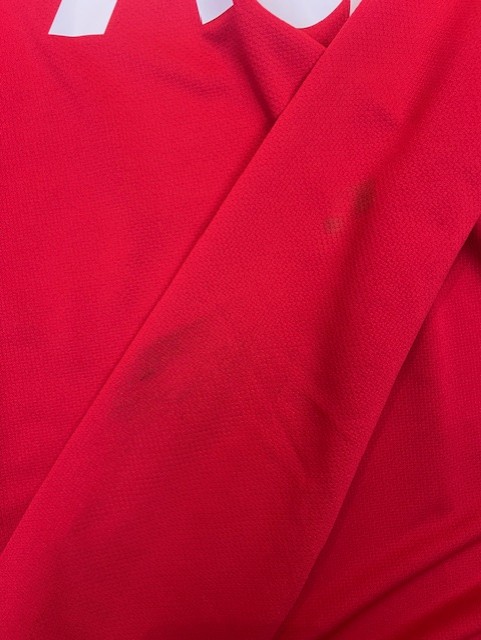 Shirt remains in good - very good condition with small - medium signs of wear and match use still visible inside and out along with some marks, pulls and stains still evident