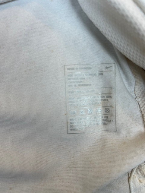 Shirt remains in worn used condition with medium - heavy signs of wear and match use still visible inside and out